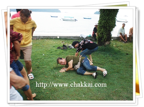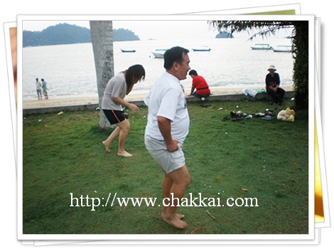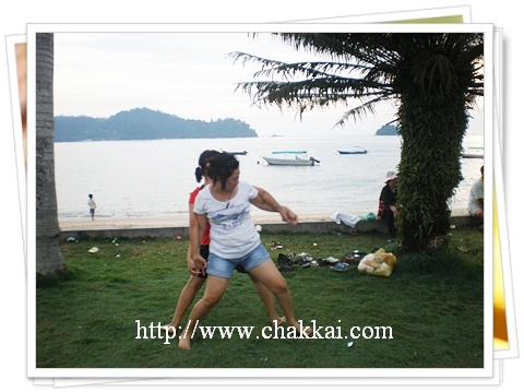 我们走路来到离Coral Bay Resort不远的Sea View Resort 的沙滩,沙滩旁有个草地,我们在这里进行一场令人看了捧腹大笑的游戏。
